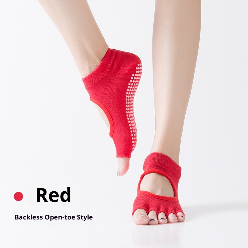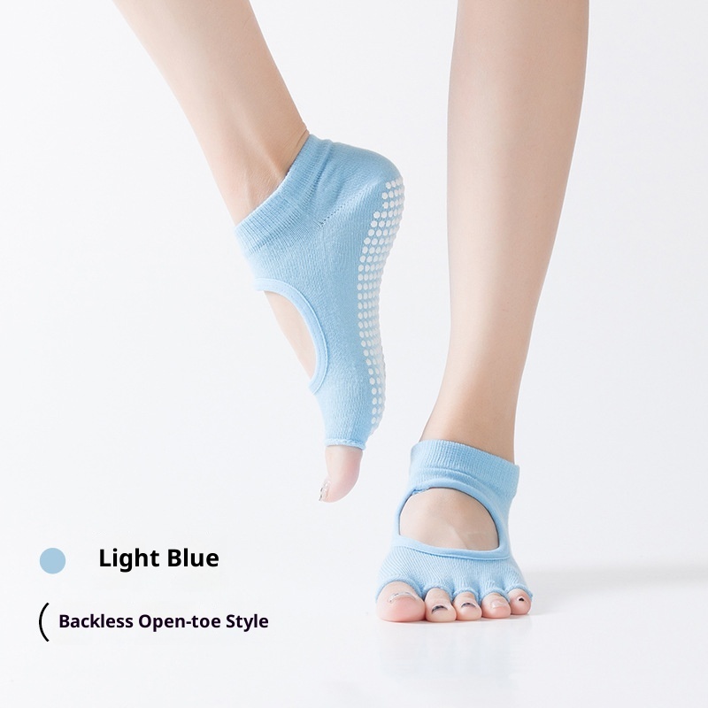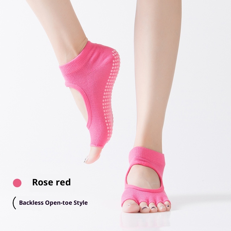 001 In Stock Direct Shipping Korean Hot Sale Open Back Yoga Five Toe Pointed Yogo Fitness Non-Slip Floor Socks