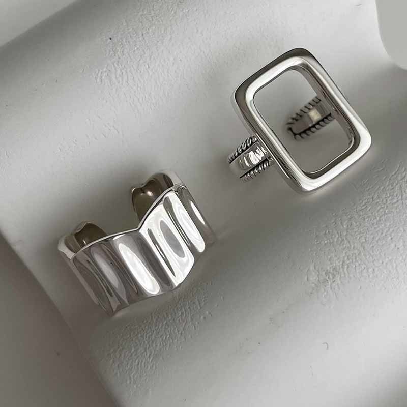 2025 Motestil sølvringsett i rustfritt stål, 2 deler