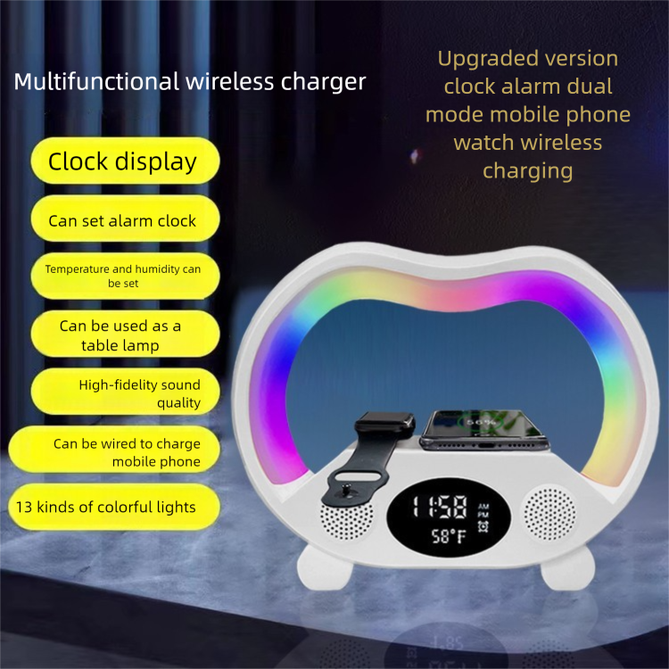 3-in-1 Wireless Magnetic Charger Night Light Bluetooth Speaker Alarm Clock Temperature 15W Fast Charging For Phones