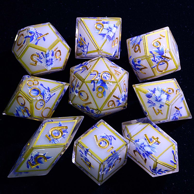 9 Polyhedral Resin DD Dice Set Celestial Porcelain Decree For Dungeons Dragons RPG