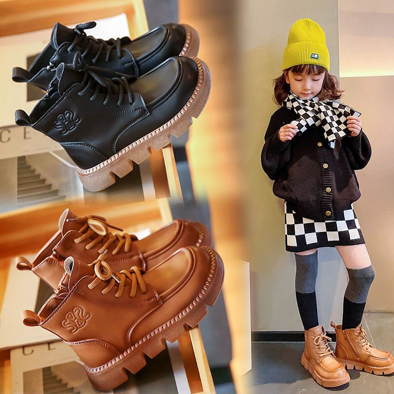 British style children's versatile Martin boots for autumn and winter 2023 new plush short boots for boys and girls, medium to large children's shoes