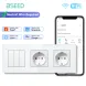 BSEED Wifi 1/2/3Gang Wall Smart Switches nical Click Buttons Tuya Smart Life App With EU Power Sockets USB Glass Frames