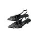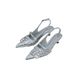 Calfskin Open Back Half Slippers,Belt Buckle High Heels,Silver Pointed Toe Mule Shoes
