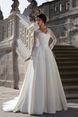 Kvinners blonder lange ermer etterfølgende brudekjole enkel etterfølgende slank blonder sateng bankett vert brudekjole