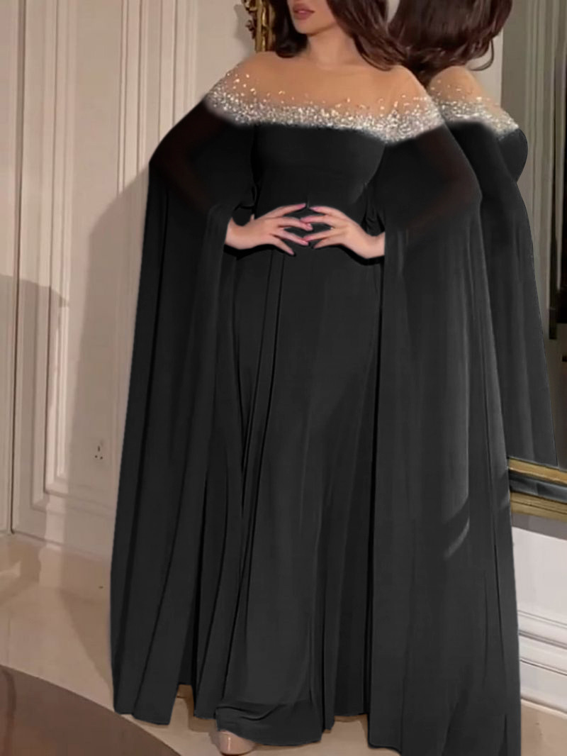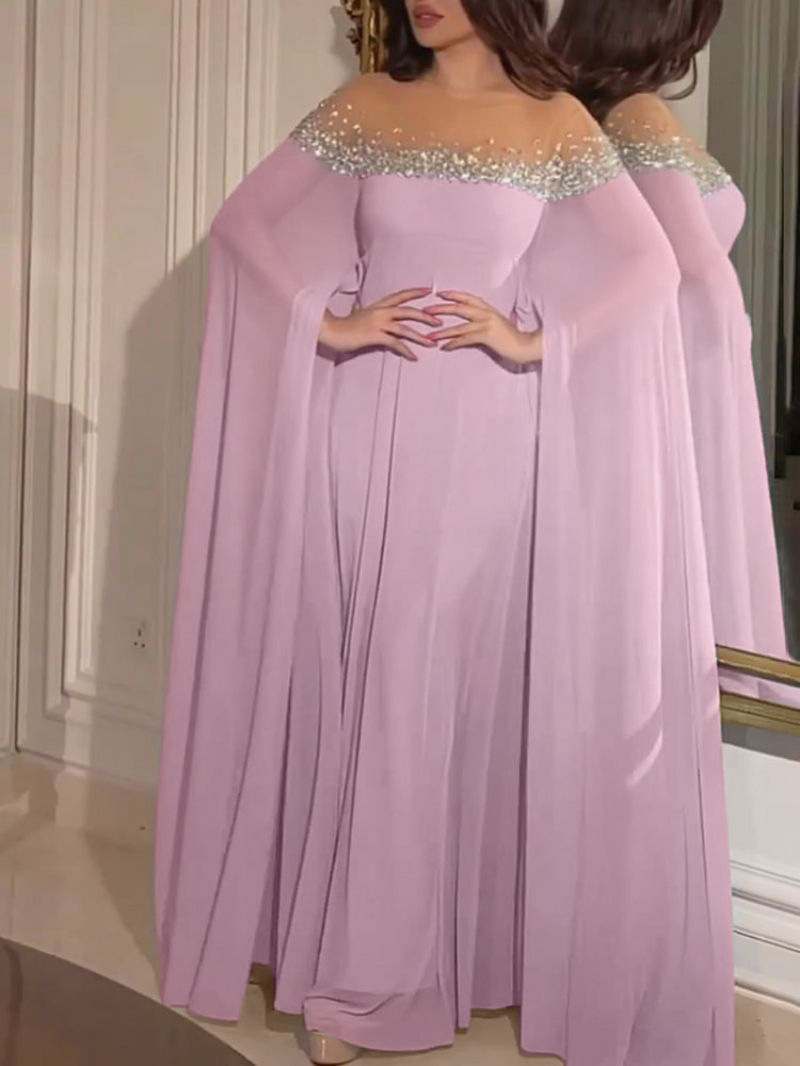 Women's Clothing Temperament Sexy High Waist Hot Diamond Pearl Chiffon Banquet Evening Dress