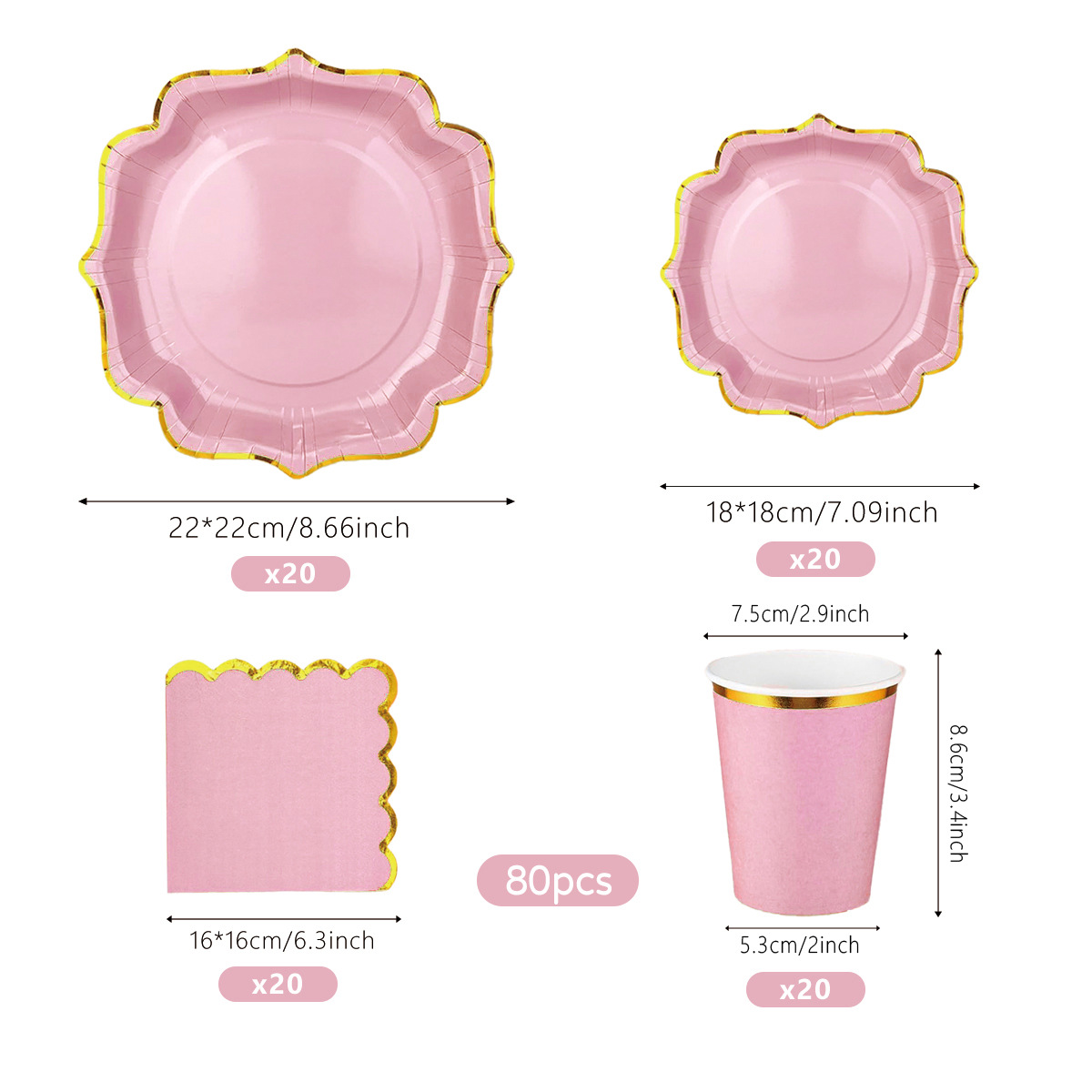 Elegant Pink & Gold Disposable Party Tableware Set - 7” Plates, 8.6” Plates, 9oz Cups, 6.3” Napkins