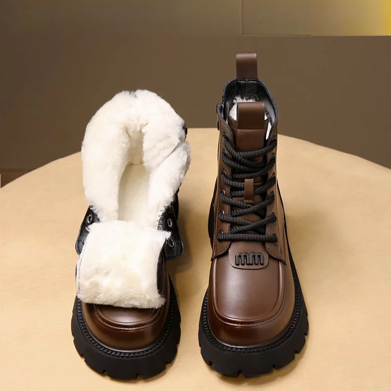Fall/Winter Trendy Leather Round Toe Thick-soled Mid-range Boots Cyber Celebrity Street Shops Fashion Women's Shoes