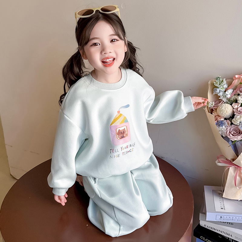 Girls Cartoon Printing Set 2025 Autumn New Children's Korean Version Sweater Sweatpants Long-sleeved Knitted Two-piece Set Trendy