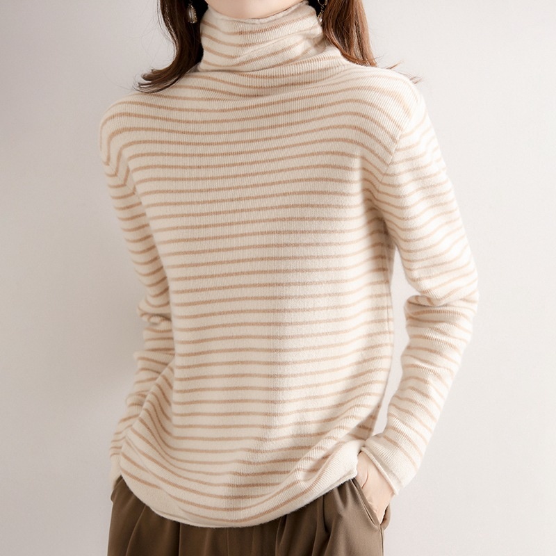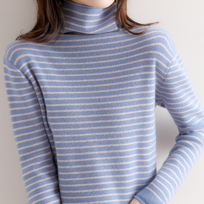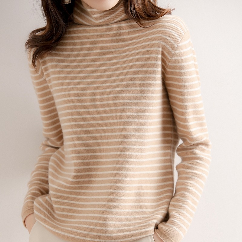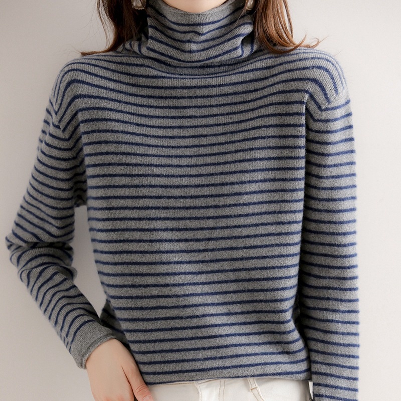 Item Number:ZD026,Origin:Hebei,Brand:Qian Qi Xue,Source of Main Image:Real shots with models,Product Source Category:In Stock,Inventory Type:Complete order,Is it in stock?:yes,Fabric Name:Knitted Core-Spun Yarn,Main fabric composition:Viscose,Main fabric material composition 2:Nylon,Lining Composition:Polyester Fiber Dacron,Lining Material Composition Content:10%-29%,Style:OL Commuting,Pattern:Striped,Thickness of Yarn:Ordinary Yarn,Knitting Craft:Computerized Knitting Machine,Thickness:Moderate,Design 1:Pullover,Combination Form:Single Piece Set,Design:Loose Fit,Length of clothing:Regular Style 50cm<Length≤65cm,Collar Style:Pile Collar,Sleeve Length:Long Sleeve,Sleeve Style:Regular Sleeve,Trendy Elements:Color-blocking, Threaded,Craftsmanship:Computerized Knitting Machine,Year/Season of Release:Autumn 2022,Color:White, blue, black and white, beige, camel, dark gray,Size:M,L,XL,XXL,Main downstream platforms:, , Independent Site,Main sales regions:Europe, Southeast Asia,We have authorized private labels available:yes,Is it exclusively for cross-border export supply?:yes,Suitable for age:18-24 years old,Fashion Style:Korean Style,Style Type:Elegant Commuter,Wearing style:Pullover,Original Design Source:yes,Content of the main fabric components:51%-70%,Suitable age group:adult,Content of Main Fabric Component 2:10%-29%,Applicable Gender:Female,Product Category:Sweater, Knitwear