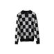 Men's Plaid Knit Sweater – Oversized Crewneck Pullover With Stretch Fabric (Black/Brown, S-XXL)