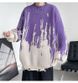 Men's Retro Knit Sweater – Oversized Casual Pullover With Tie-Dye Pattern (M-2XL, Black/Purple)