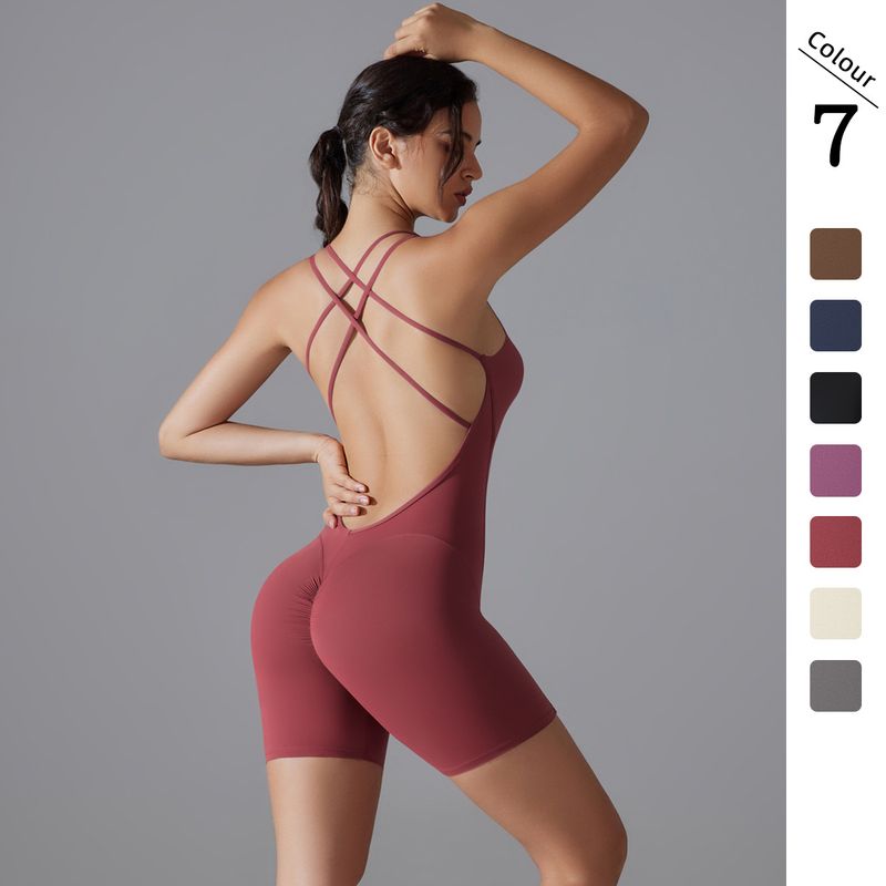 High Waist Elastic Tight Fitness Yoga Outfit With Cross Back Design, No Embarrassing Lines, Long Pants One-piece