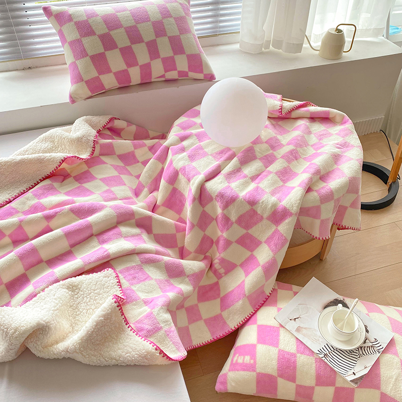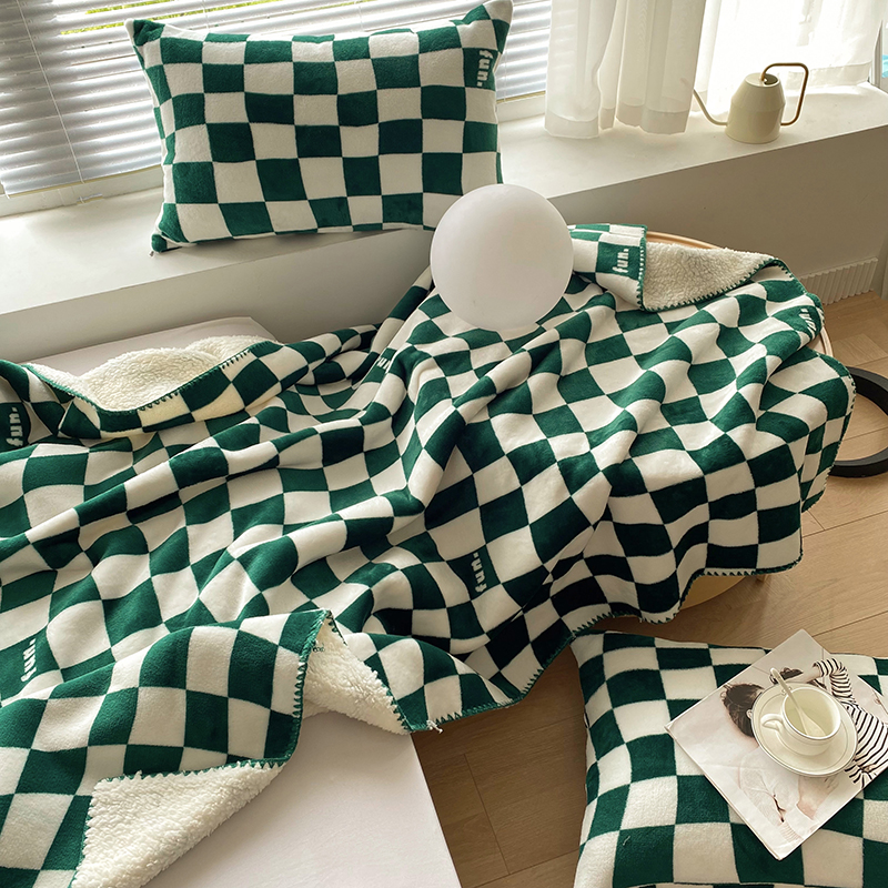 Ins~Checkerboard grid Nordic style black and white grid blanket office nap blanket shawl blanket afternoon nap blanket