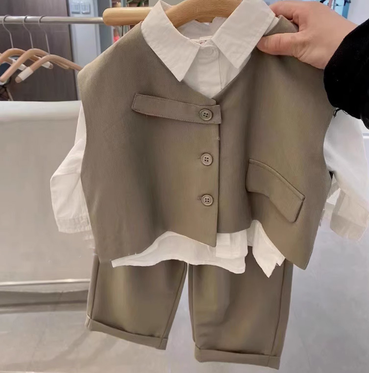 Korean version of internet celebrity fried street children's casual shirt, suit, vest, jacket, pants, autumn outfit, handsome and fashionable set for boys