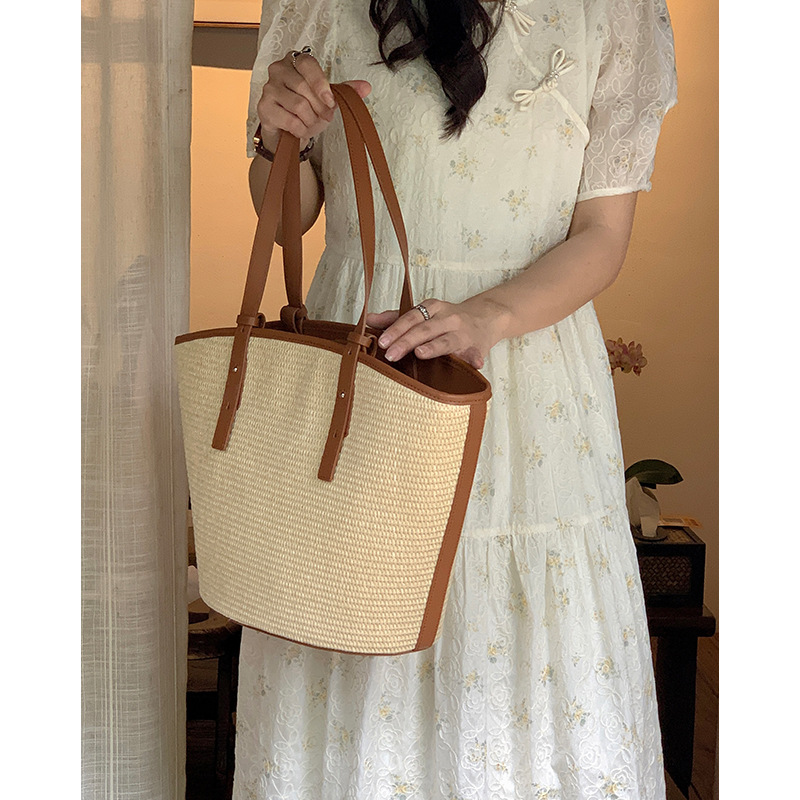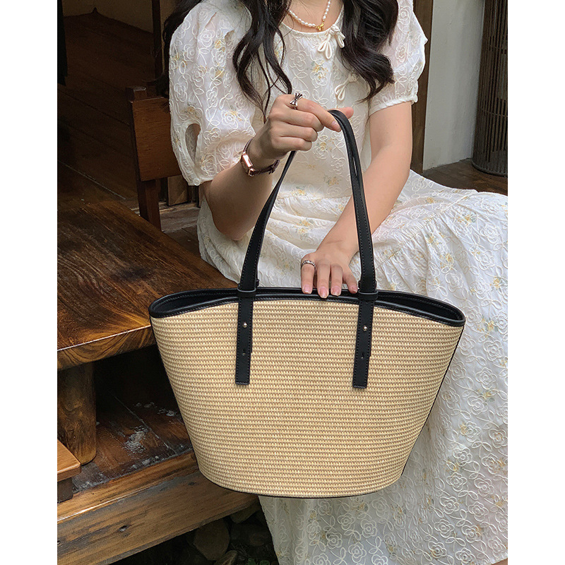 Large capacity underarm tote bag 2024 new fashionable grass woven leather woven bag niche single shoulder bag women's large bag