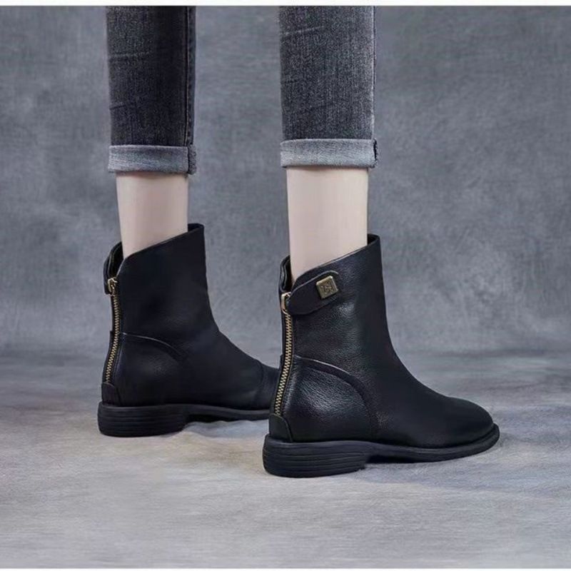 Leather Martin British Style 2024 Autumn Winter New Super Soft Fleece Lined Warm Stylish Versatile Slim Short Boots For