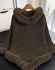 Luxury Faux Rabbit Fur Collar Oversized Knitted Cape Poncho – Elegant Women's Winter Shawl Wrap, Cozy & Stylish