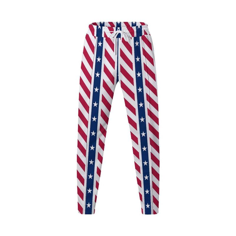 Men's Spring Summer Loose Straight Sports Casual Pants American Flag Print Oversize Long Trousers