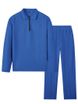 Men's Waffle Knit Half-Zip Polo Shirt & Long Pants Casual Set - Lightweight Comfort, Breathable Fabric, Stylish Autumn Outfit