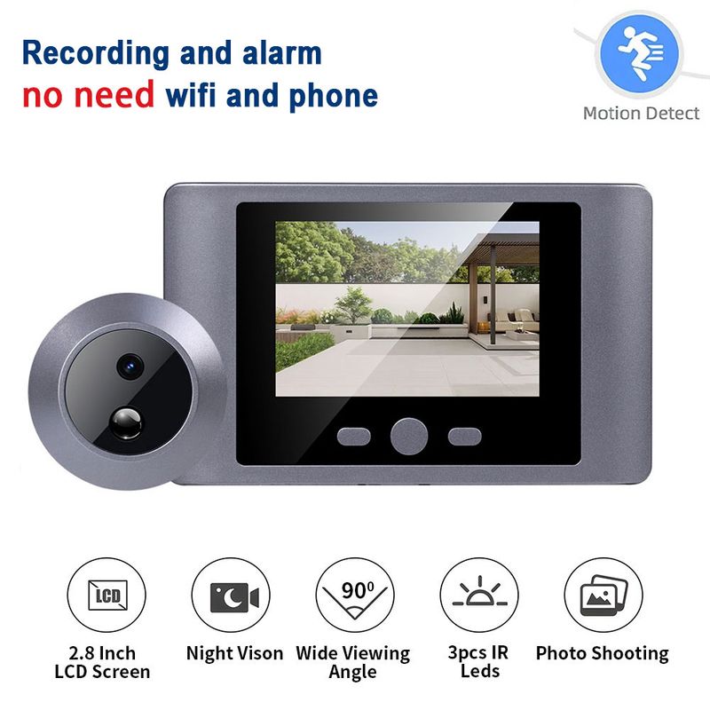 Mini Peephole Camera Door PIR Motion Detection Light Screen Door Viewer Camera Smart Home 2.8 inch Eye 2000mAh Quiet