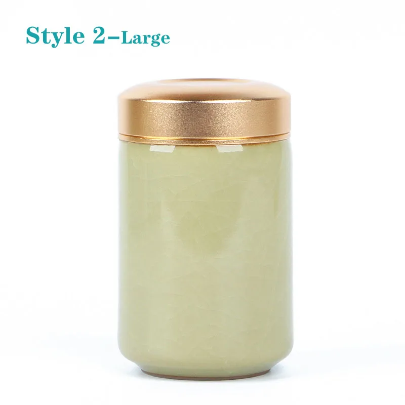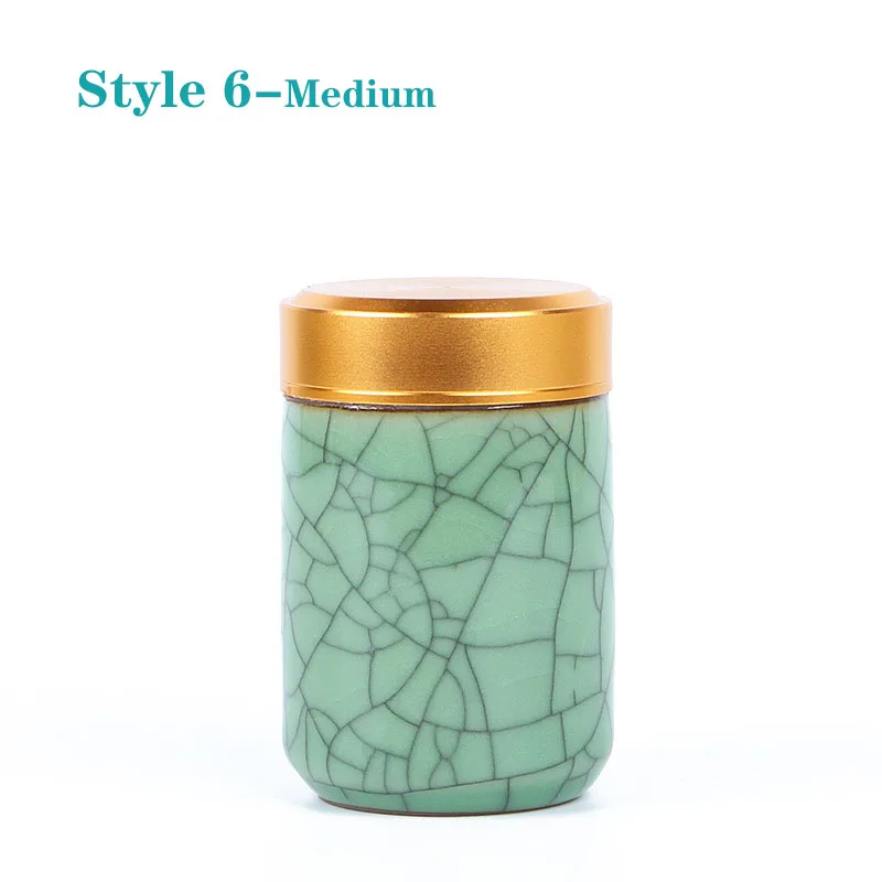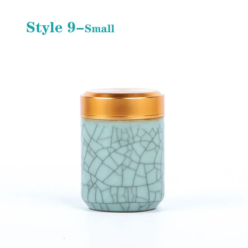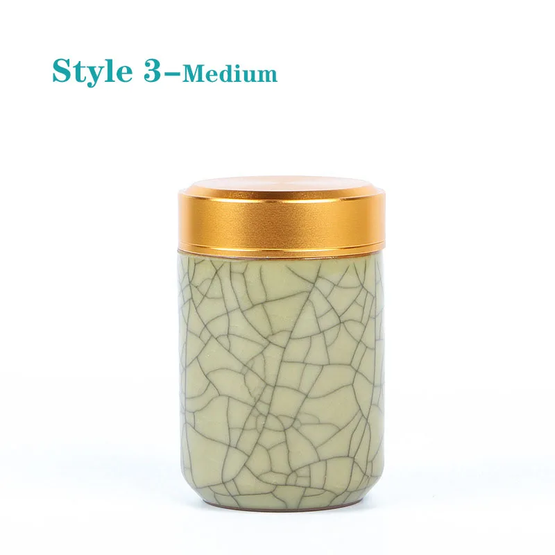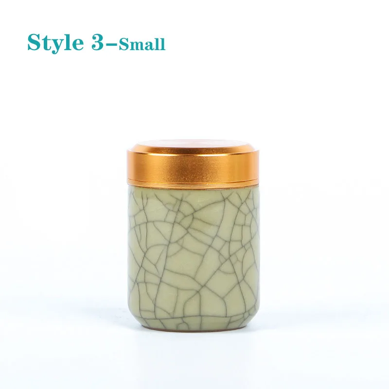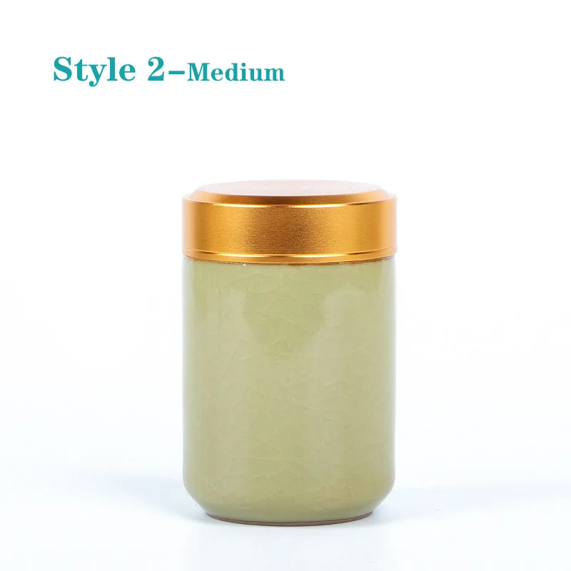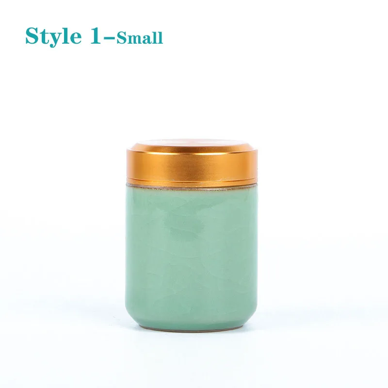 Mini Tea Ceramic Storage Jars Celadon Metal Lid Sealed Cylindrical Container
