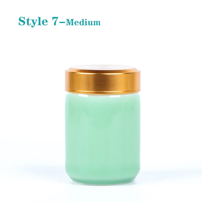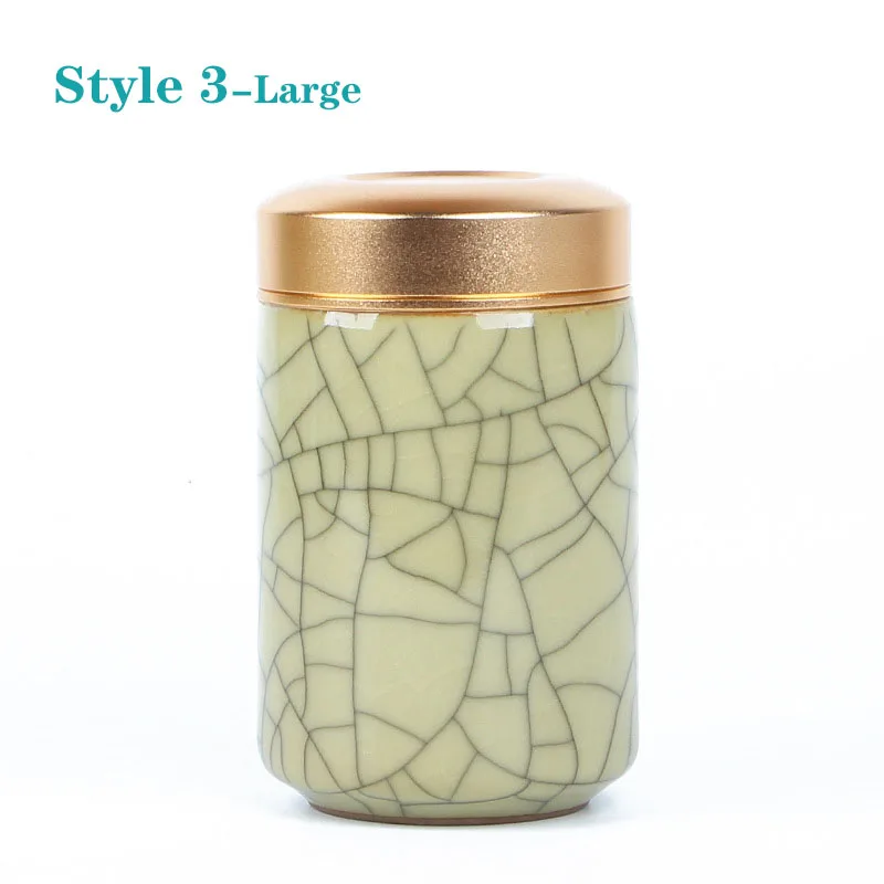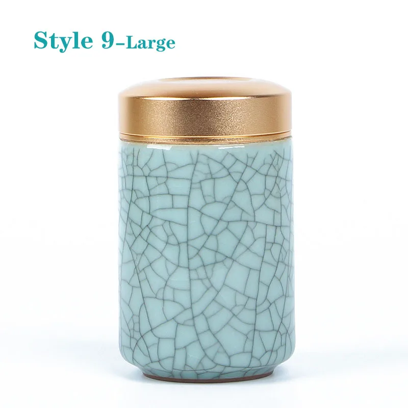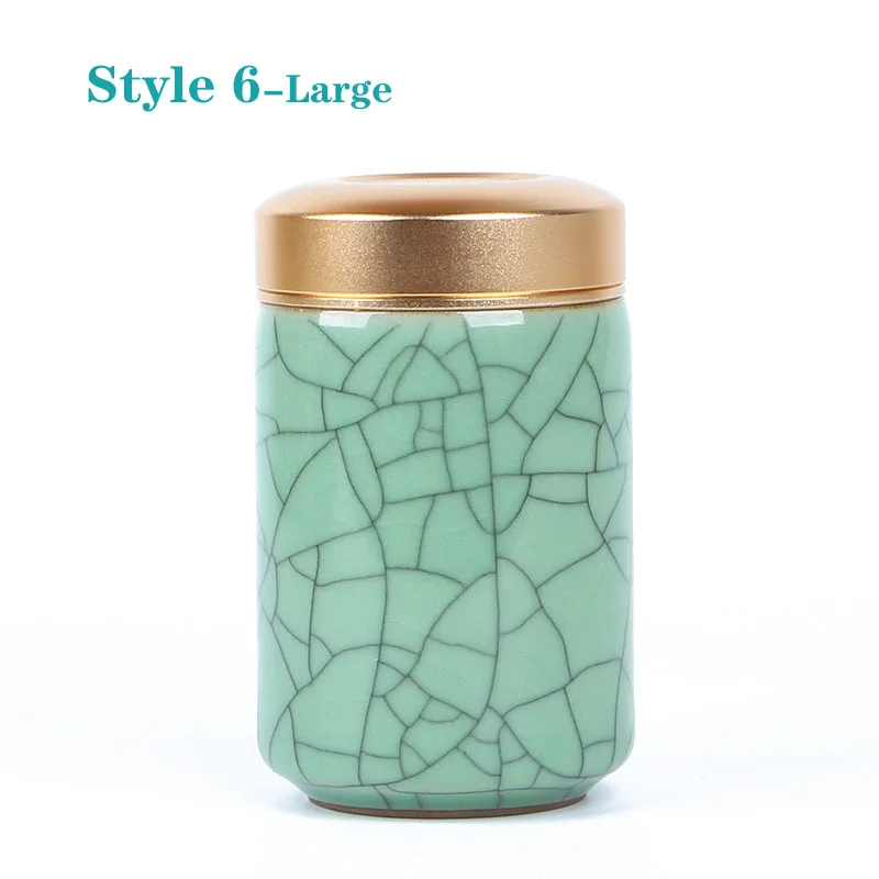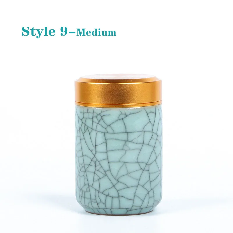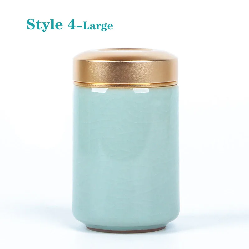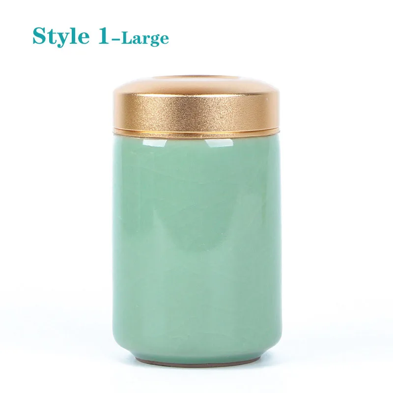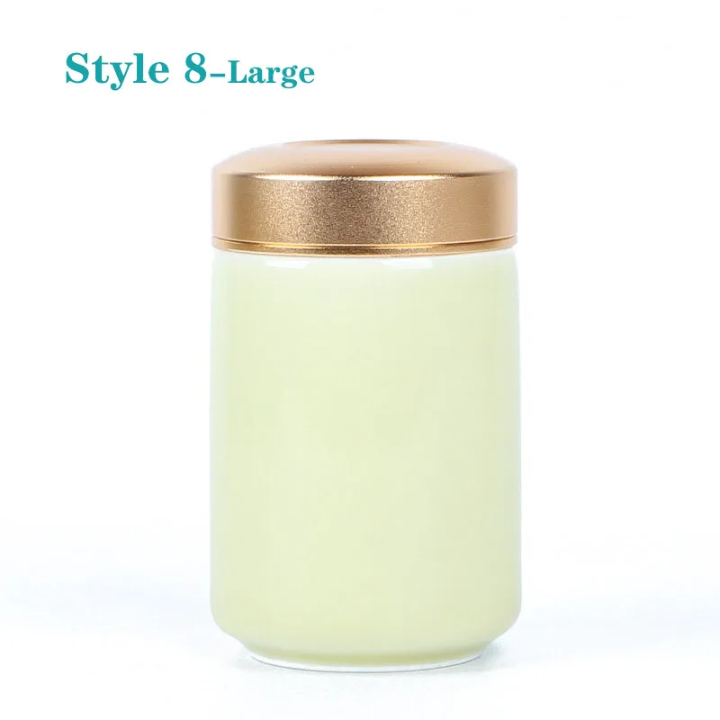 Mini Tea Ceramic Storage Jars Celadon Metal Lid Sealed Cylindrical Container