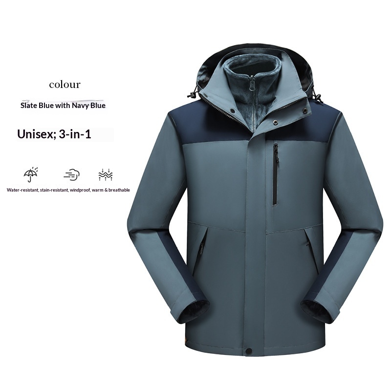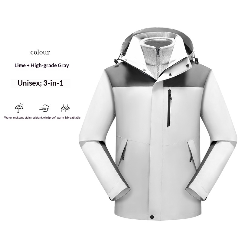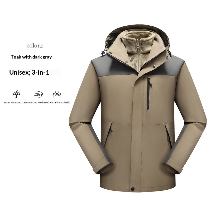 New High-Cost-Performance Solid Color and Color Block Three-in-One Genuine Jacket with Optional Silver Fox Down Inner Liner and Logo