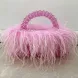 New Pearl Bead Bag With Feather Fur Designer Brand Clear Acrylic Crystal Tote Handbag Women Handmade Party Purse