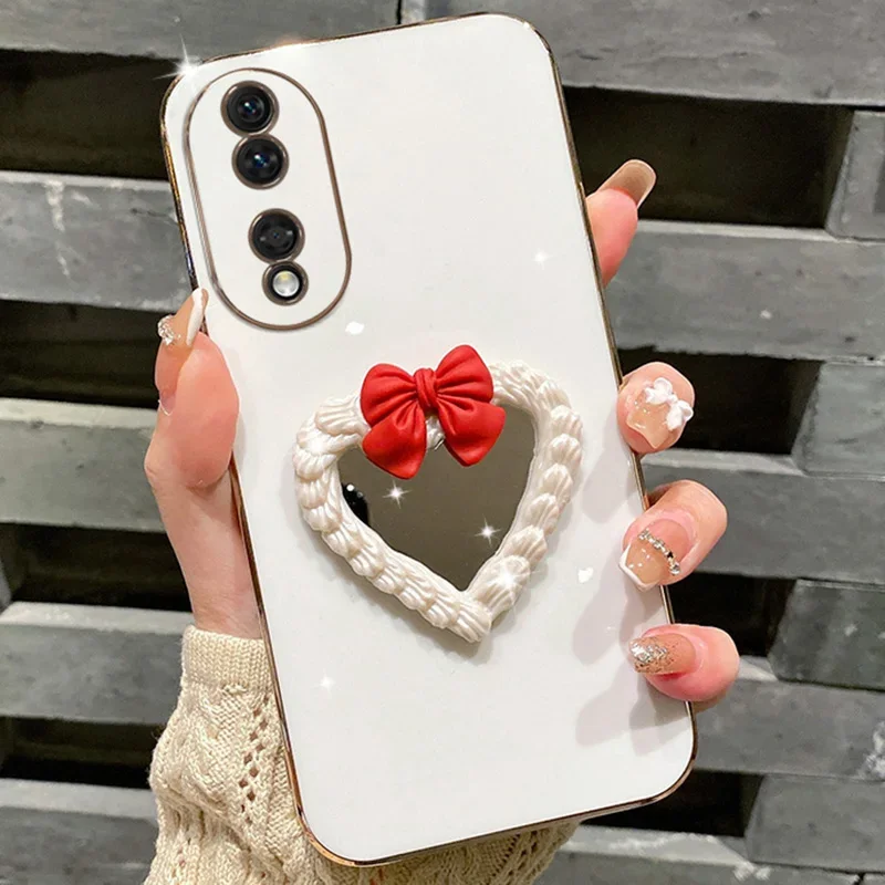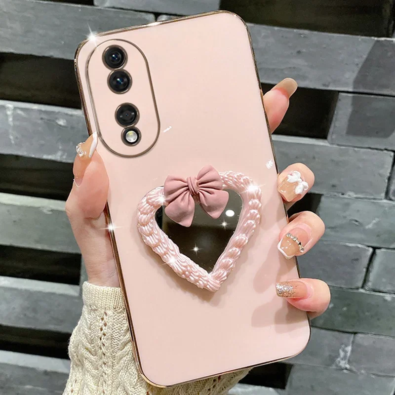 Plating Case For Samsung A34 A54 A53 A32 A33 A13 4G 5G A12 A73 A25 A31 A21S A14 Bows Cream Cake Heart Make-up Mirror