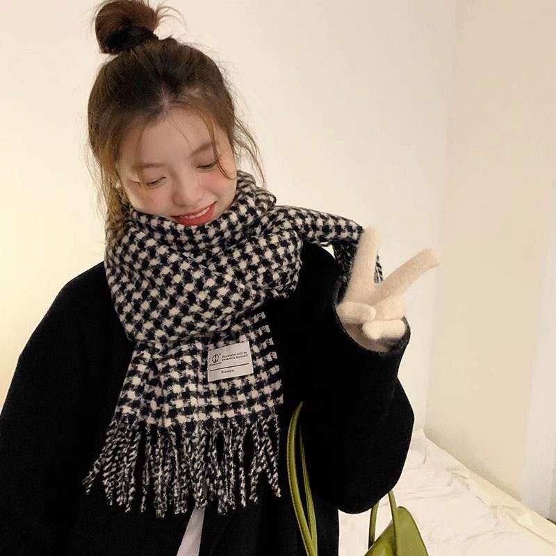 Qianniao plaid scarf with tassel for girls in winter 2024, new warm knitted couple scarf and shawl dual-use