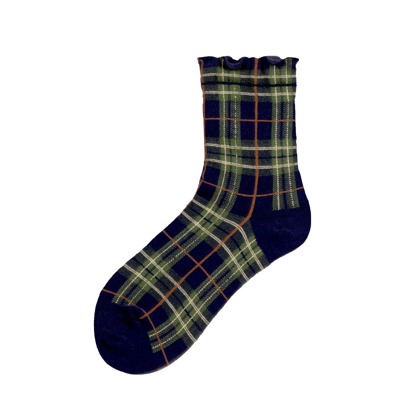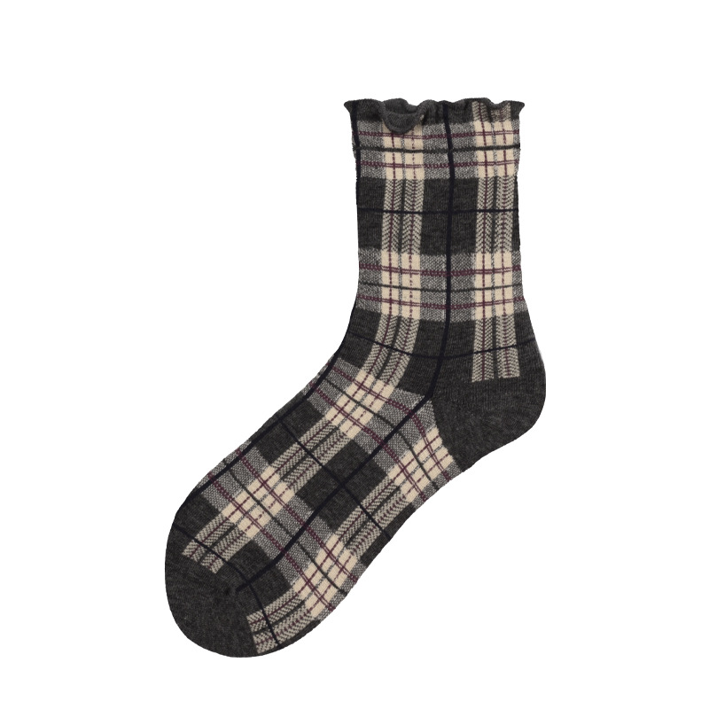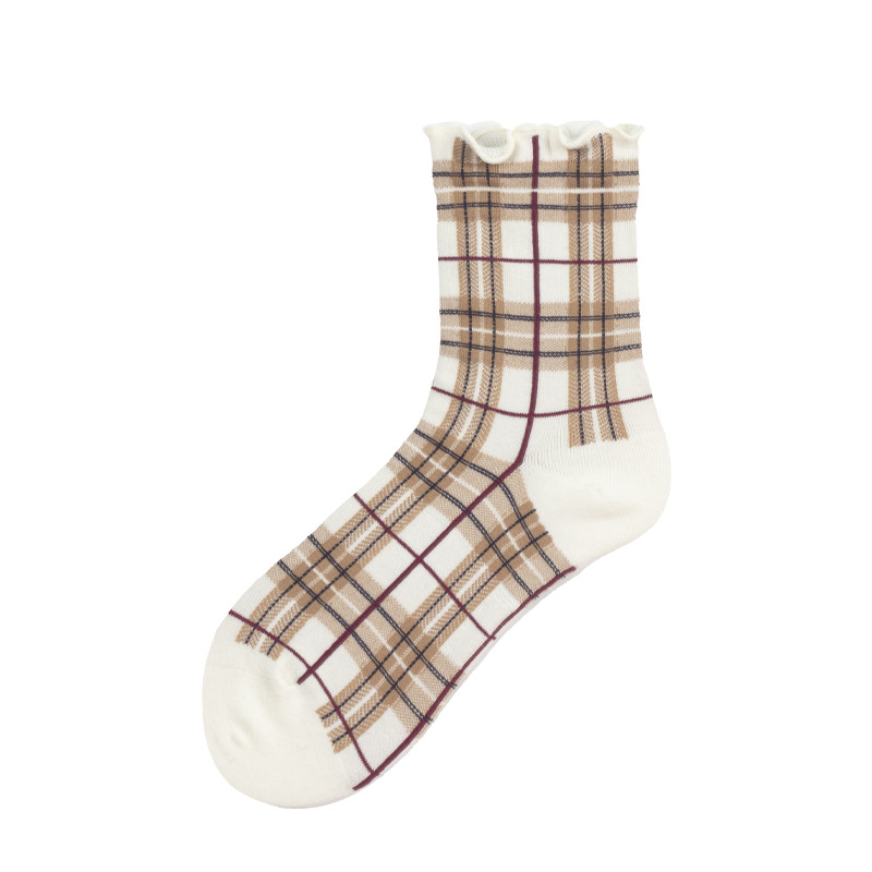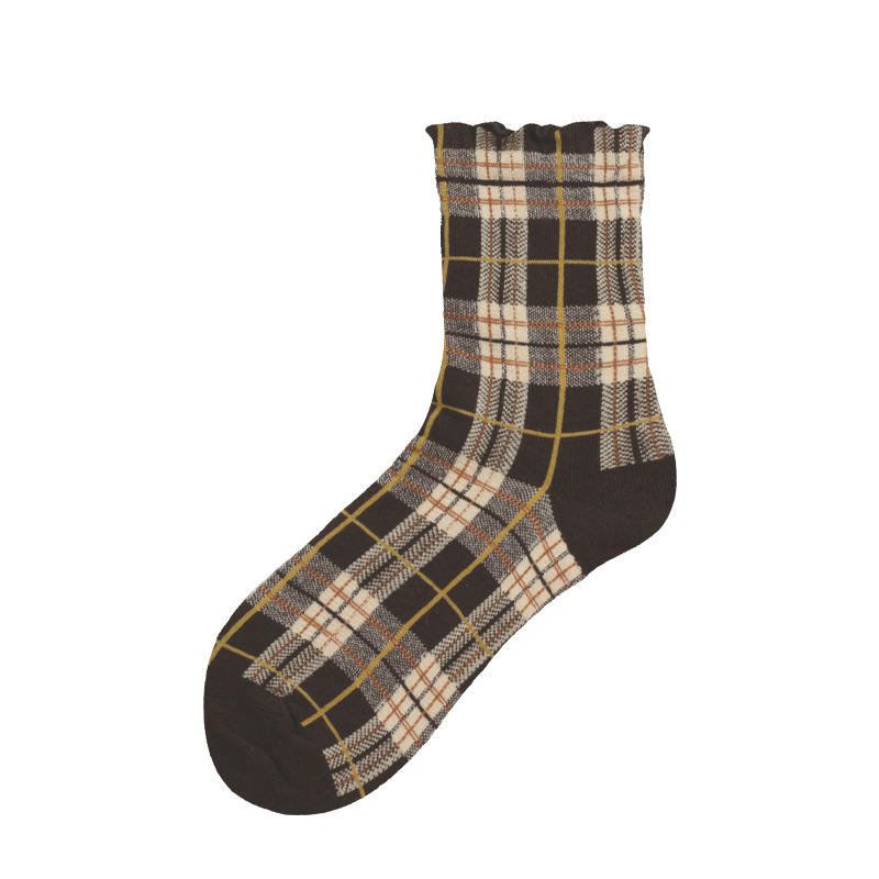 Apparel Accessories women autumn and winter hot selling retro mid tube socks Brown ins diamond shaped trendy socks thick style ladies cotton socks
