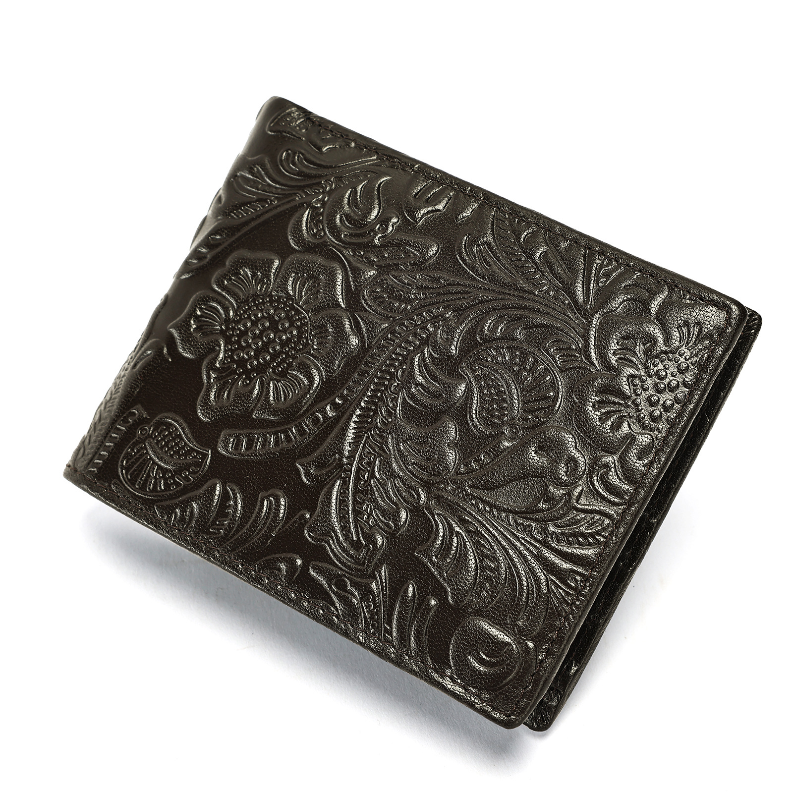 Russian New Vegetable Tanned Leather Men's Wallet Retro Embossed Coin Wallet High End Genuine Leather 2 Fold Wallet Men