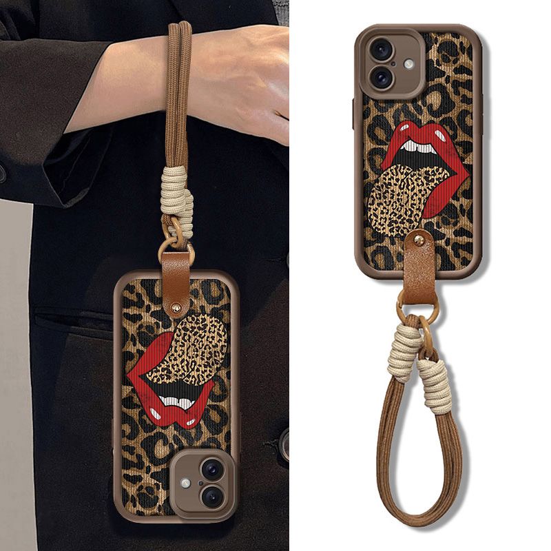 Sexy Lips Leopard Lanyard Phone Case For IPhone 16 11 12 13 14 15 Pro MAX XS Max XR 7 8 Plus Wrist Strap Soft TPU Cover