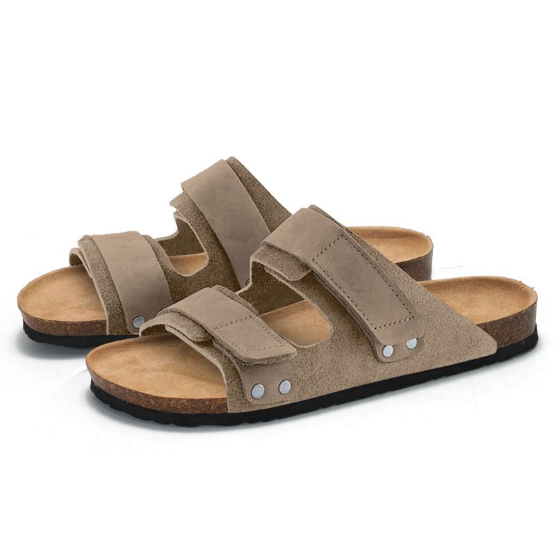 RUIZUSTOCK Matte Men's Cork One-Strap Flip-Flops Double Strap Men's Sandals Student Beach Shoes