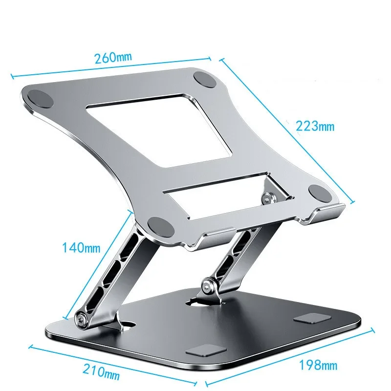 Upgrade your workspace with the Aluminum Laptop Stand Bu yüksek kaliteli, tamamen alüminyum alaşımlı malzemeden üretilmiş laptop stand, dayanıklı, sağlamdır ve şık ve modern bir görünüm sunar, bu da laptop'ınızı mükemmel bir şekilde tamamlar The adjustable design allows you to choose the perfect viewing angle to reduce eye strain and improve posture You can easily switch between sitting and standing positions by raising or lowering the stand to your preferred height