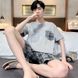 Teen-Approved Summer Style: Men’s Cotton Thin Short-Sleeved Shorts Pajamas Set - Perfect Loungewear For Warm Days, Large Sizes