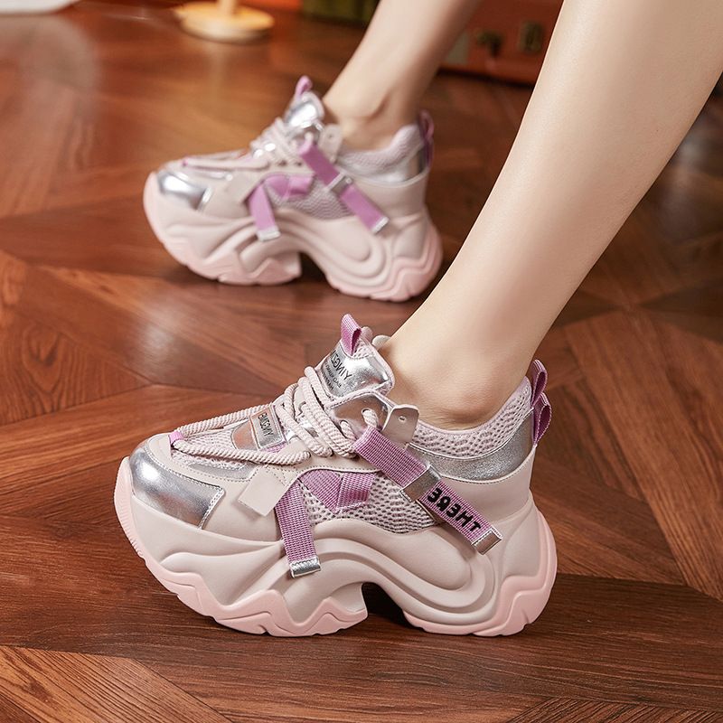 Tykksålet pappa våren 2024 nye europeiske stasjons allsidige sportssko, svampsåle, liten innvendig høydeøkning