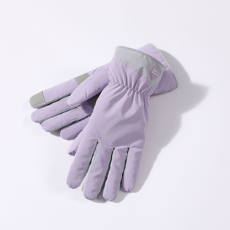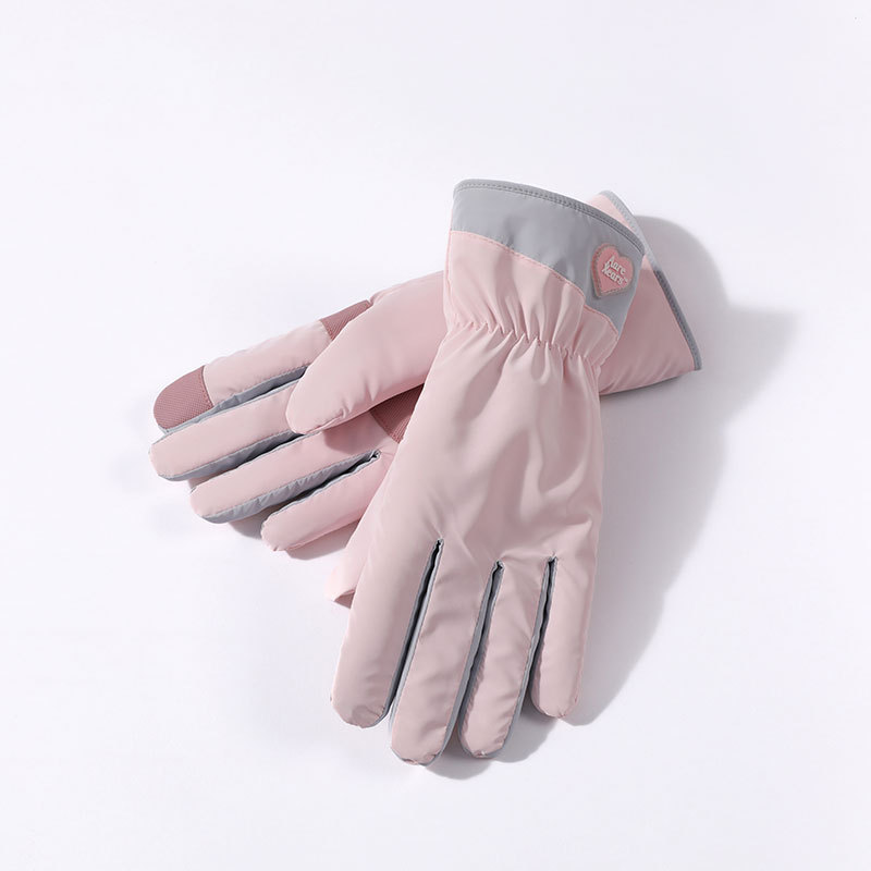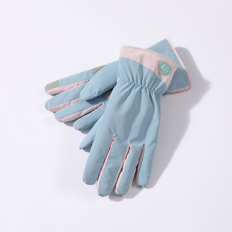 Winter skiing gloves with plush insulation, cold and waterproof, windproof, outdoor cycling, anti slip, touch screen, sweet and fashionable, contrasting colors
